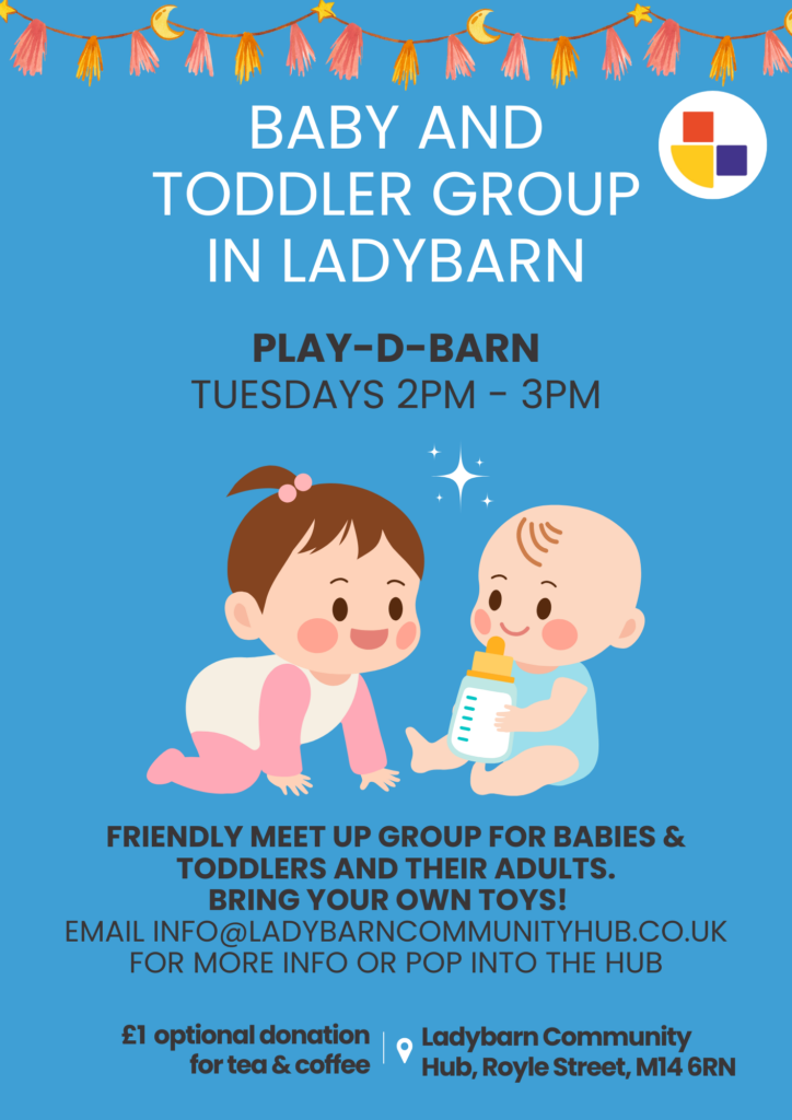 | Tuesday | LGBTQ+ Coffee Morning 10:30am – 12:00pm Popular and friendly group for LGBTQ+ people. Hot drinks & biscuits provided. £2 donation. Play-d-Barn (new!) 2pm – 3pm (Starting on 21st October.) Friendly meet up group for babies/toddlers & their adults. Bring your own toys. Drinks & biscuits provided. £1 donation. The Veg Box People collection site 2pm – 4pm Visit www.vegboxpeople.org.uk to subscribe to your own locally grown organic fruit and vegetable boxes delivered straight to the Hub. |
